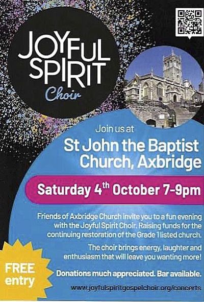 Joyful Spirit Choir, 4 Oct, 1900-2100, Axbridge Church