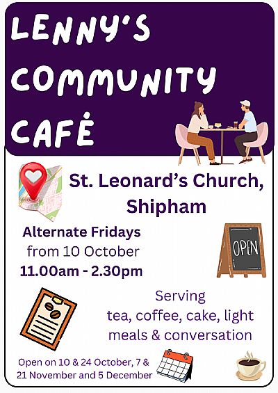 This runs on Fridays throughout the summer, in Shipham Church - 1030-1230 - for anyone who needs some light food and company.